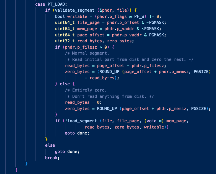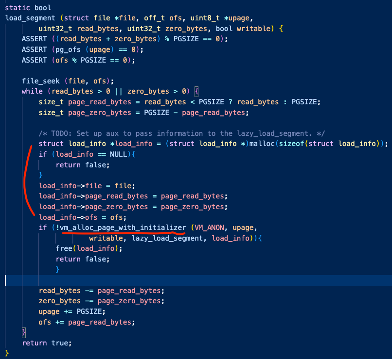 따라서 VM 주차의 load_segment() 함수는 다음처럼 달라진다.