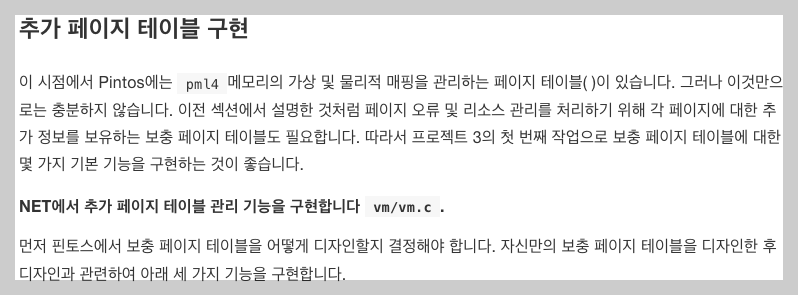 깃북을 처음 읽었을 때, 다음처럼 spt(supplemental page table)이라는 것을 추가 구현해야 한다고 나와있었다.