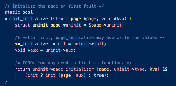 이번 포스팅에서는 lazy_load 과정만 살펴볼 것이므로 uninit이 swap_in되는 과정을 살펴보자.